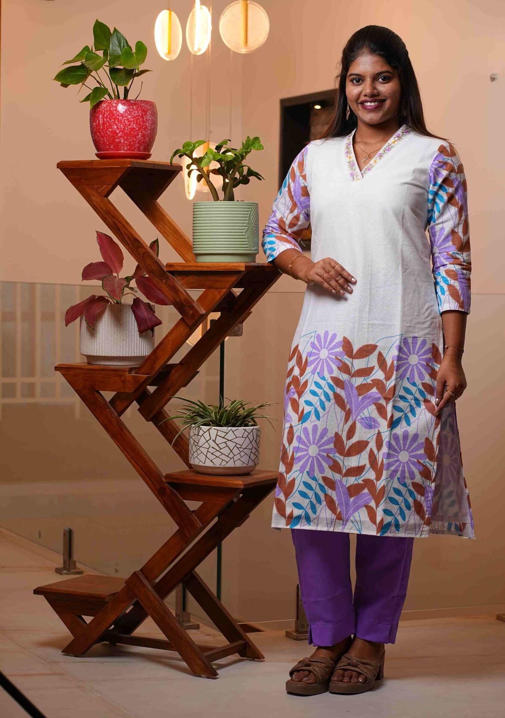 A comfortable digital cotton set featuring elegant daman prints, paired with a soft crepe pant. Lightweight, stylish, and perfect for everyday